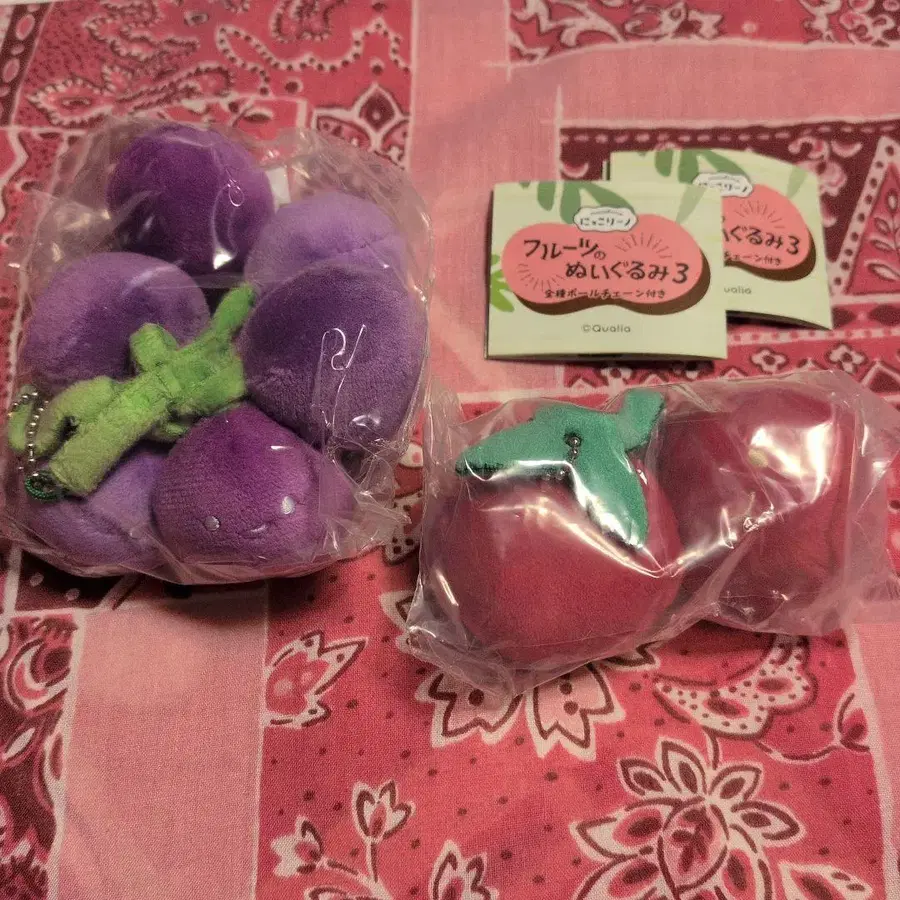 퀄리아 후르츠 봉제 인형 포도 아메리칸 체리 세트