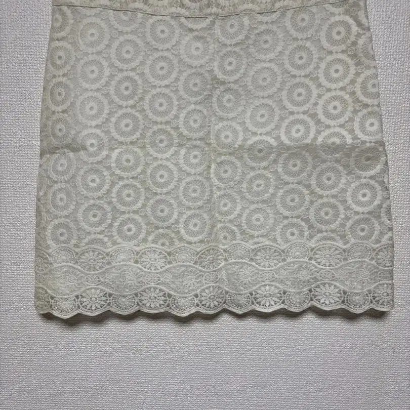 아이보리 레이스 무늬 타이트 스커트