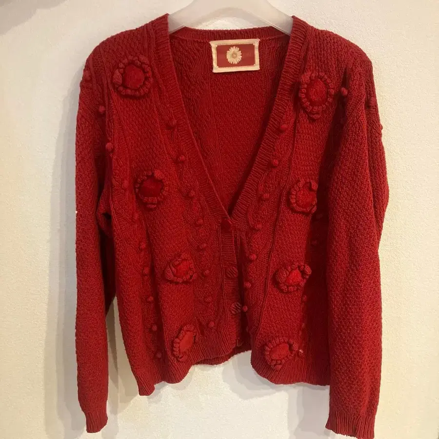 핑크하우스 데이지 마가렛 꽃 모티브 빨간색 가디건