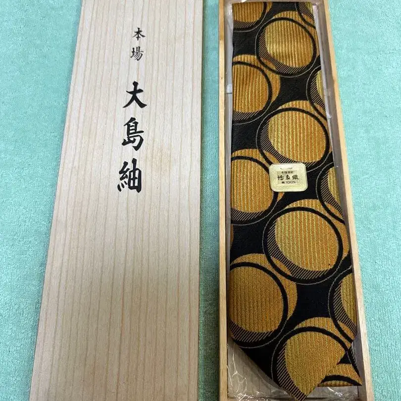 오시마 명주 넥타이 블랙과 골드 컬러 원형 무늬