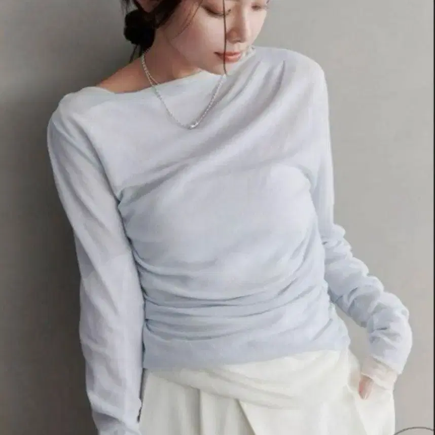 MIESROHE 비대칭 개더 TOPS 라이트 블루
