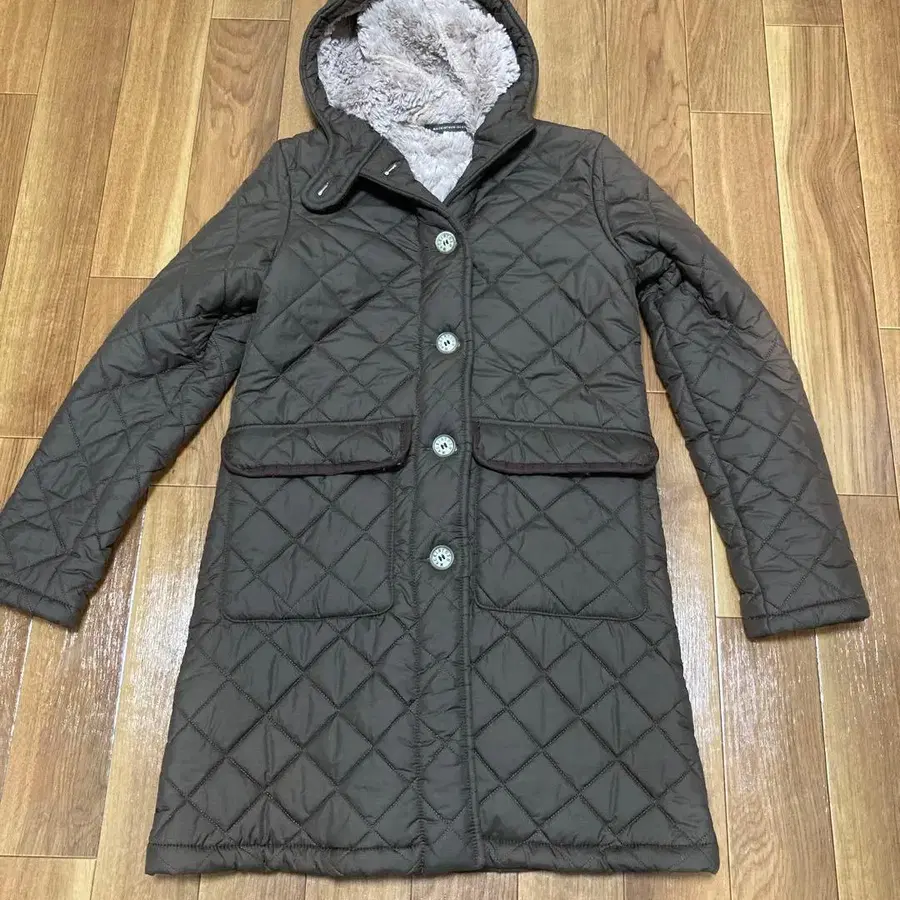 브라운 퀼팅 자켓 후드 부착