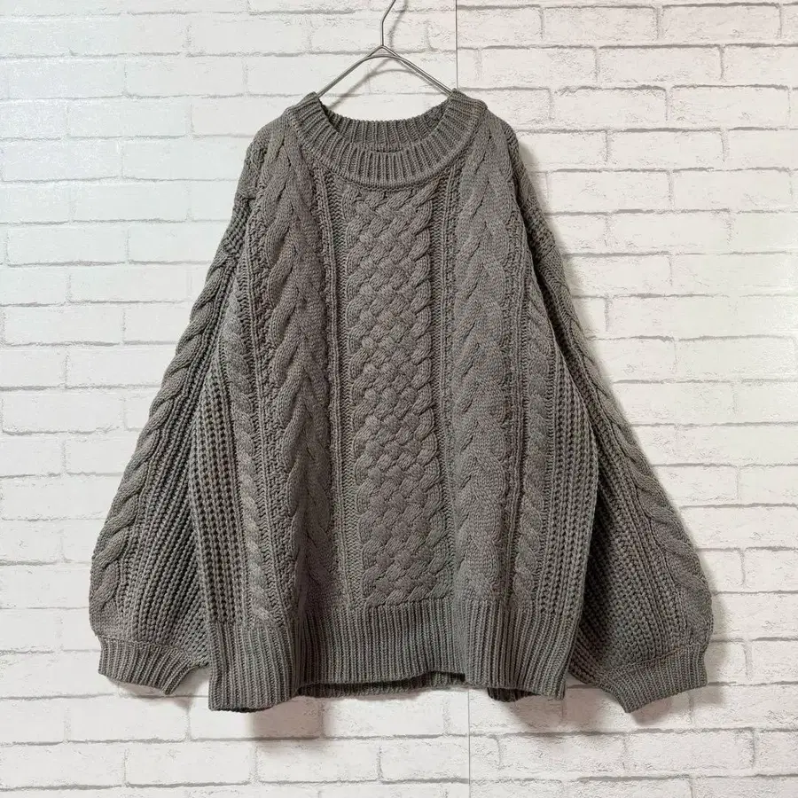 [ 디스코트 ] 벌룬 슬리브 케이블 니트 M 크루넥 오버 사이즈