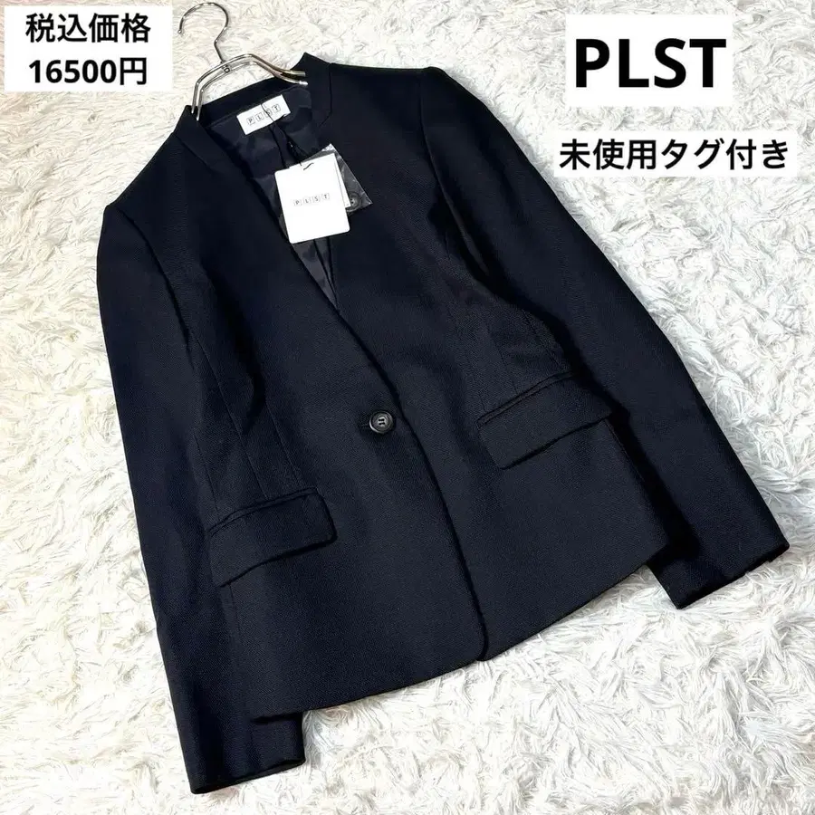 *PLST 의 다크 네이비 색상의 폴리레이온 스트레치 노카라 자켓, 가벼운 소재로 스타일리시한 디자인.