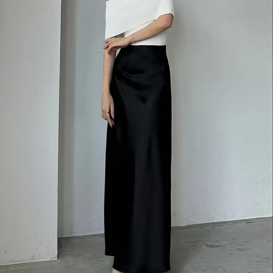 Louere 하이웨스트 새틴 바이어스 내로우 스커트