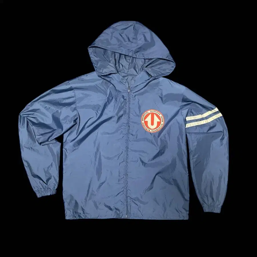 80s 스트릿 나일론 자켓 블루 와펜 자수 라인 구제 의류