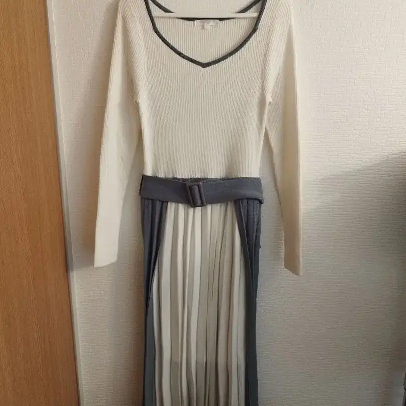 rienda 니트 원피스 화이트 x 스카이블루 F 사이즈