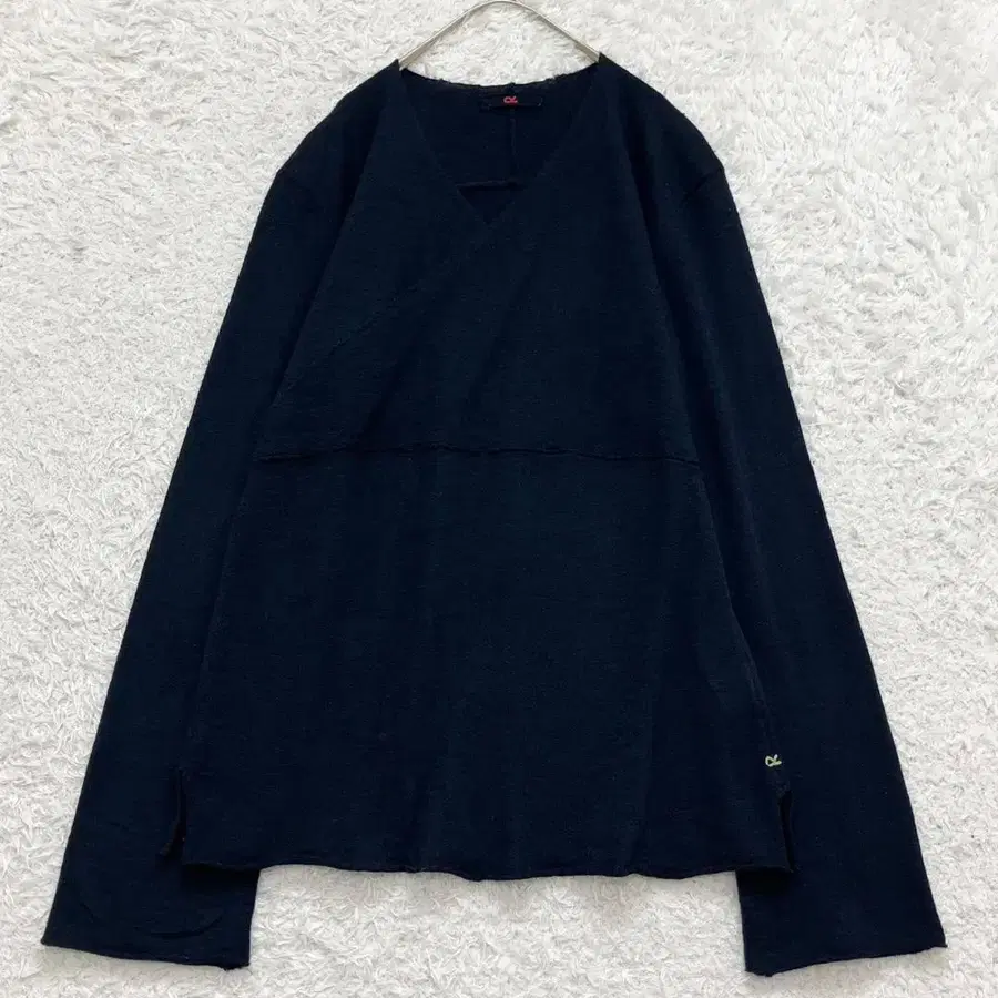 컨디션 최상 45R 융모 카슈쿨 니트 스웨터 R 자수 네이비 나염 인디고