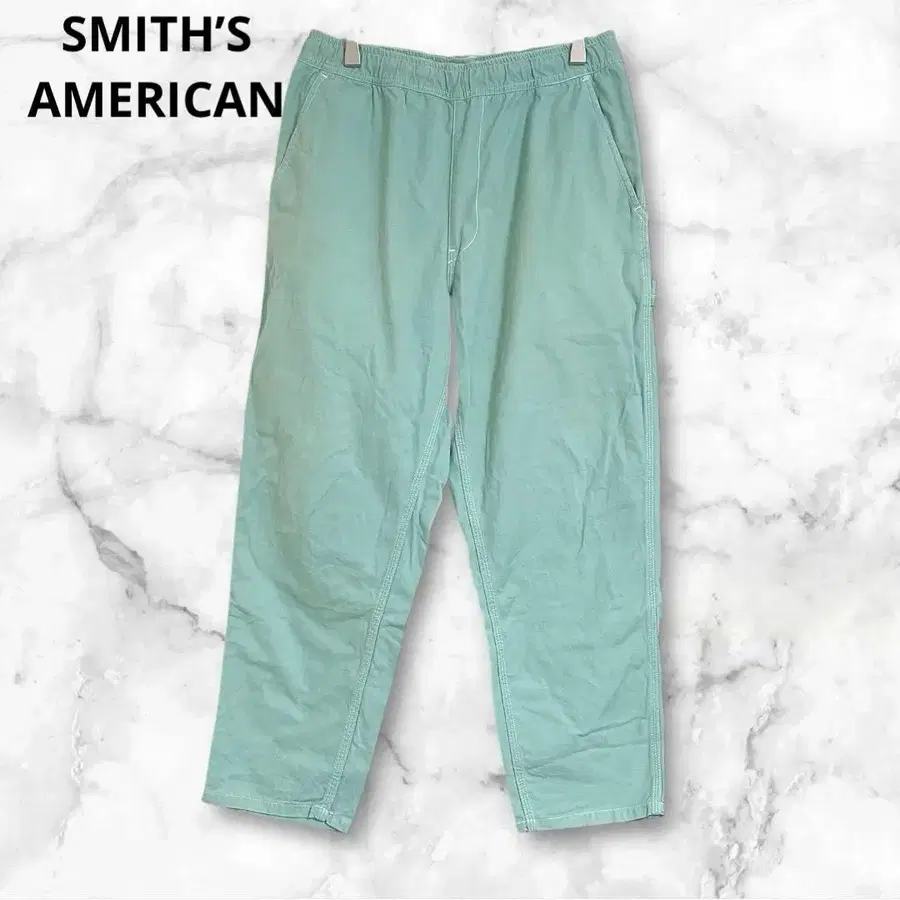스미스 아메리칸 캐주얼 팬츠 허리밴딩 M 민트 그린 면 100%