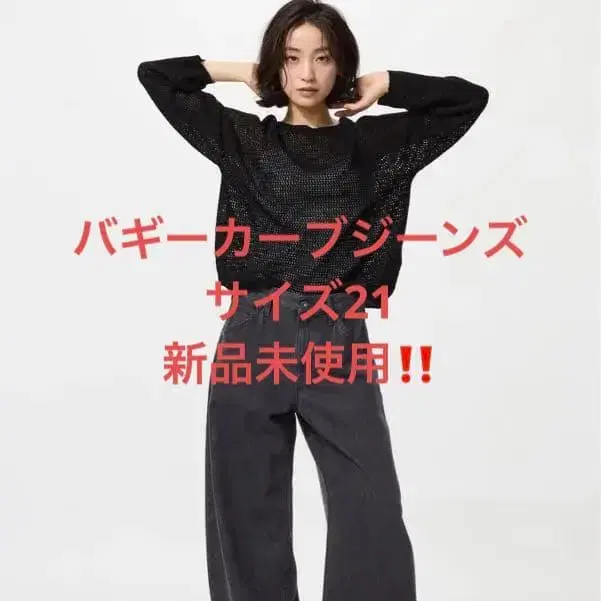 유니클로 배기 커브진스 기장 짧음 사이즈 21 블랙