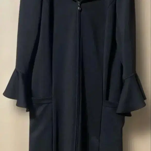 르네 블랙 플레어 소매 롱 코트