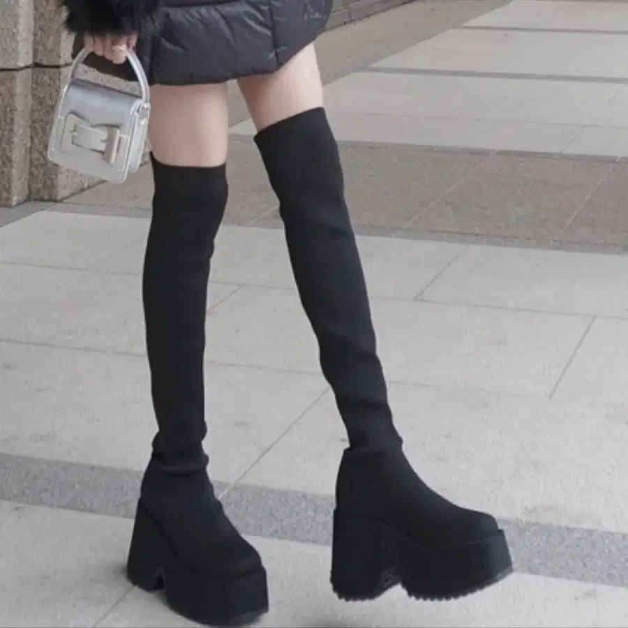 GRL 그레일 스트레치 니트 통굽 롱 부츠