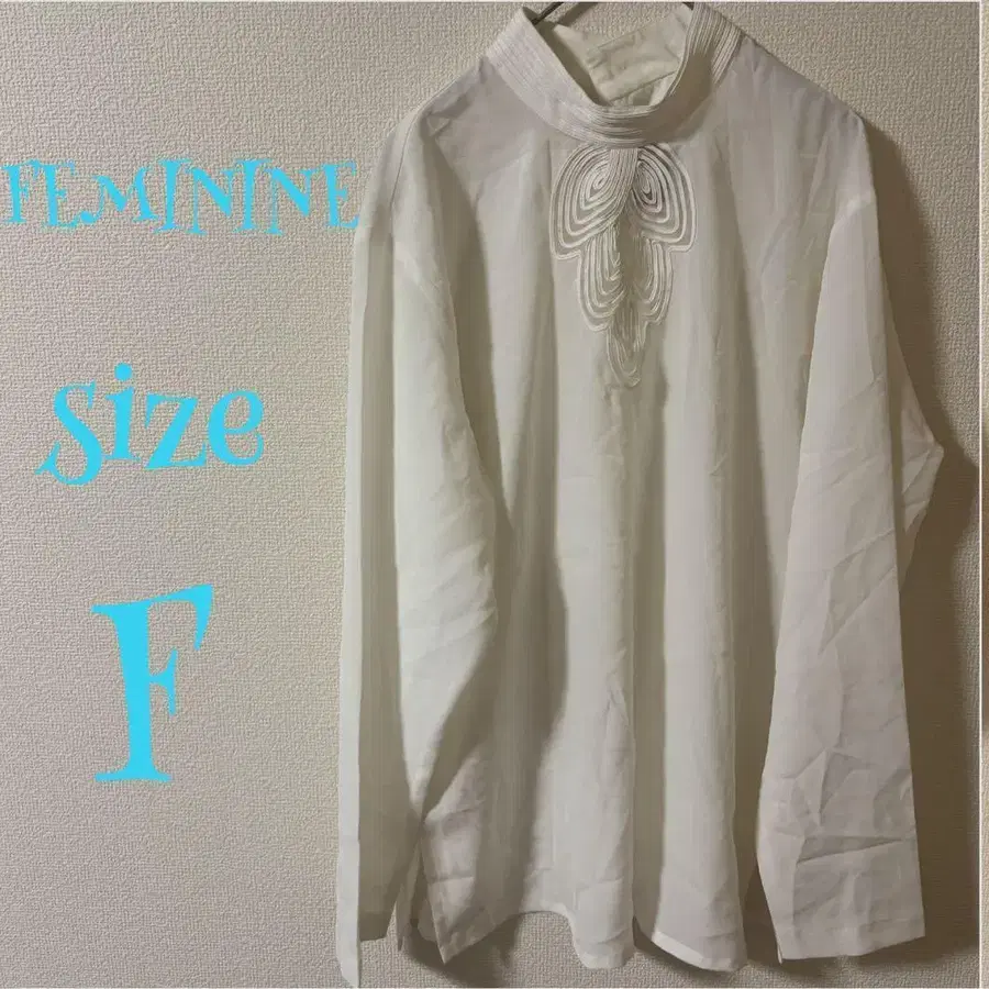 FEMININE 화이트 자수 긴팔 셔츠 사이즈 F 일본제