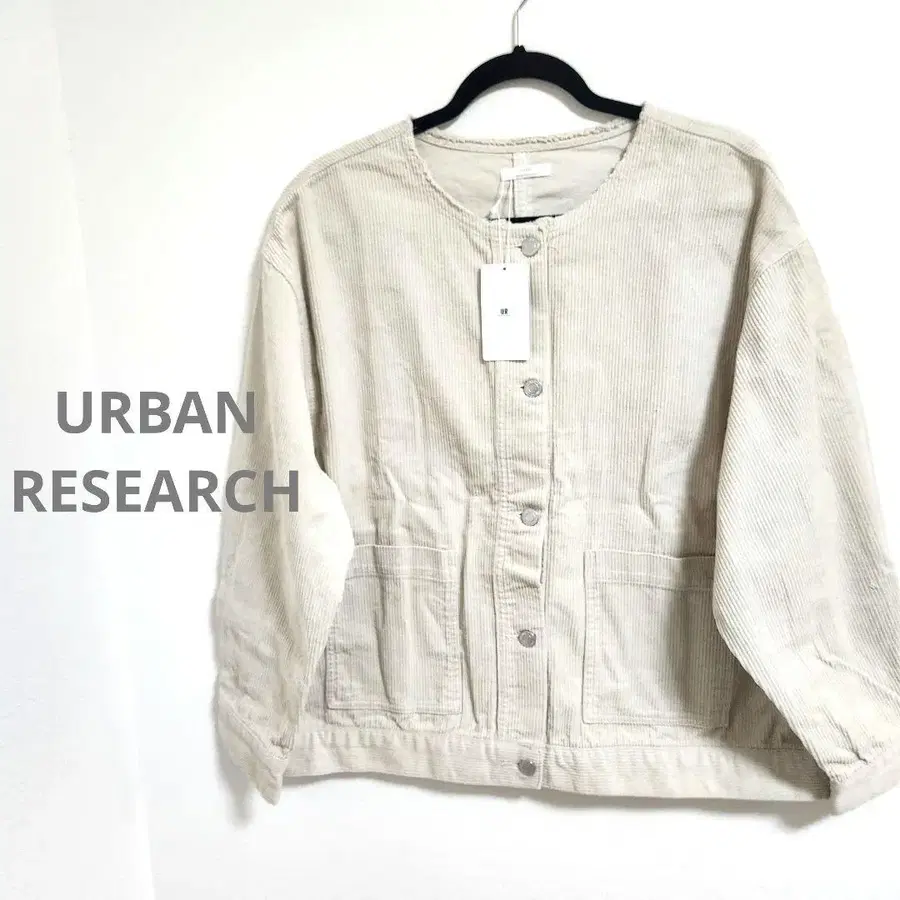 코듀로이 소재의 베이지 자켓, 프론트 포켓이 있어 실용적입니다.