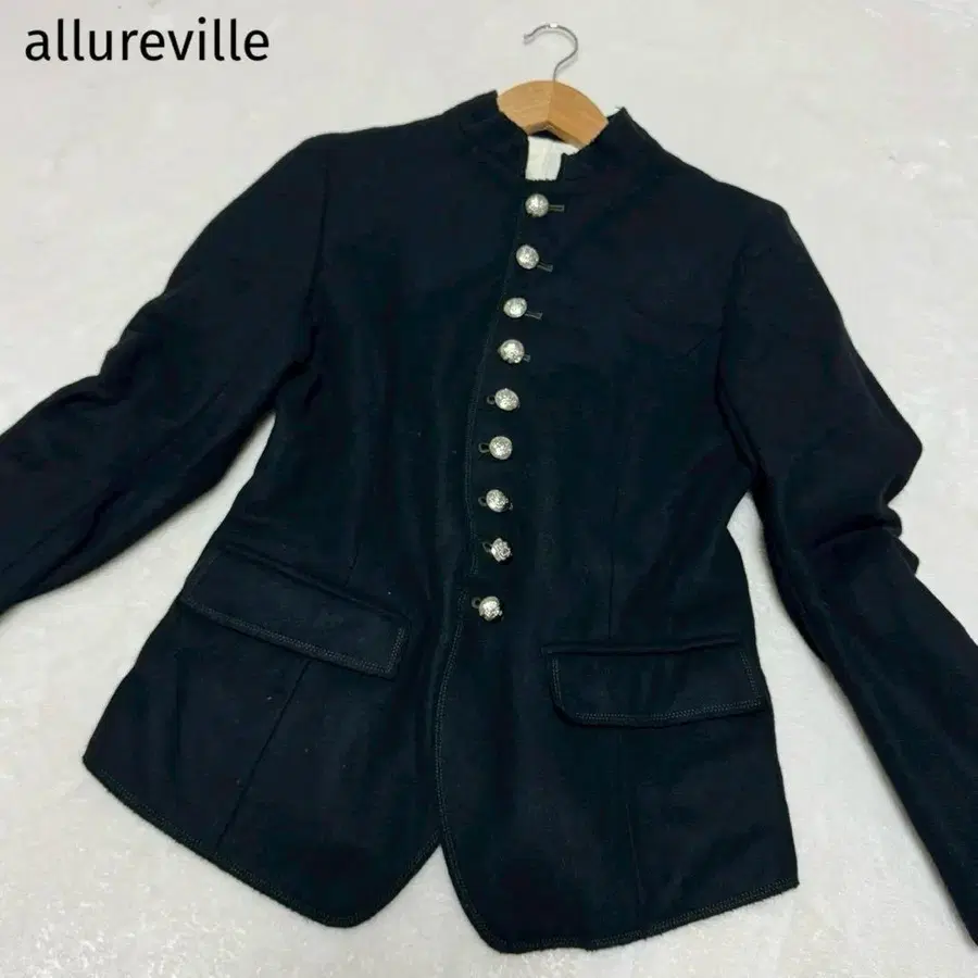 미사용 알아바일 하이넥 울 자켓 은색 버튼 블랙