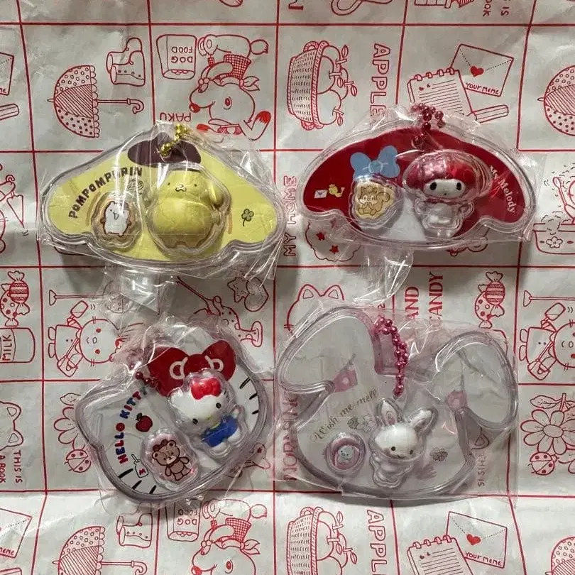 산리오 패키지 참 & 초코 보로 ● 키티 ● 폼폼푸딩 ● 마이멜로디 ( 시크릿 ) ● 위시미멜 중복되어 판매합니다. 내부 가방은 미개봉이지만 초기 불량 등은 제조사 측으로 문의 부탁드립니다. 잘 부탁드립니다.