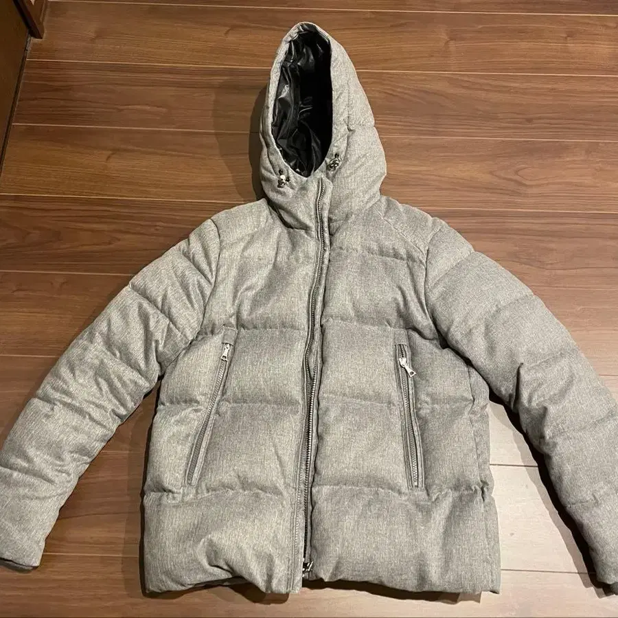 그레이 다운 자켓 후드 부착
