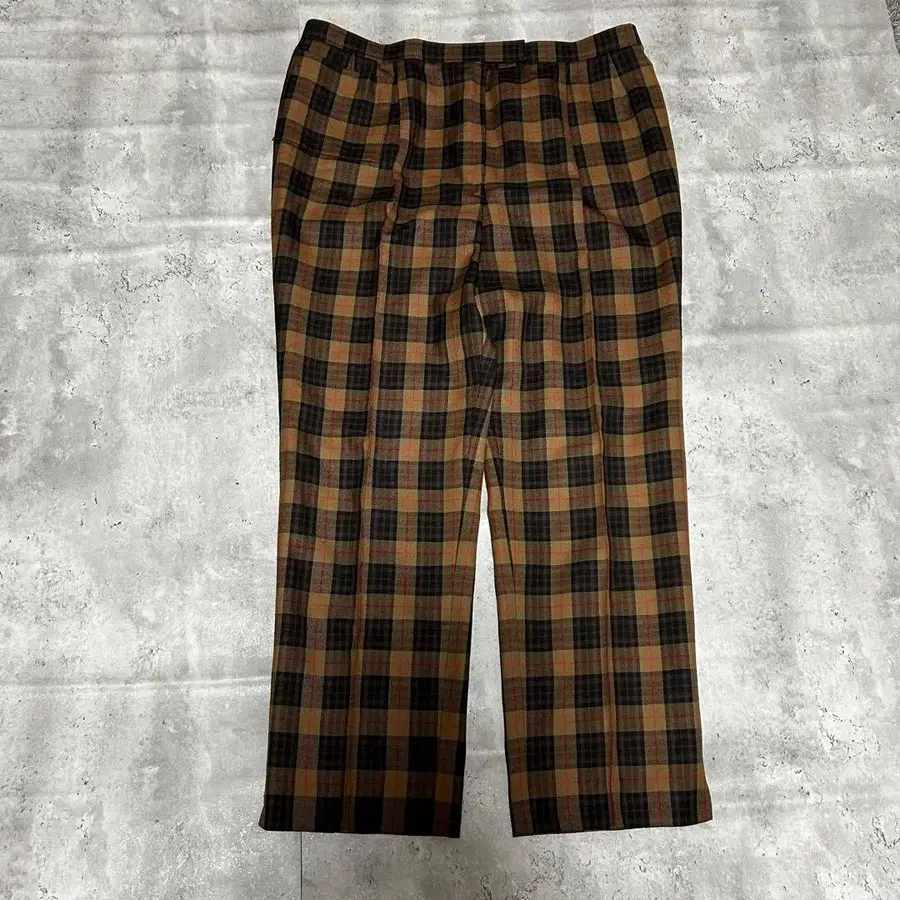 쇼와 레트로 체크 팬츠 브라운 빈티지풍 스트레이트 가을/겨울 구제 의류