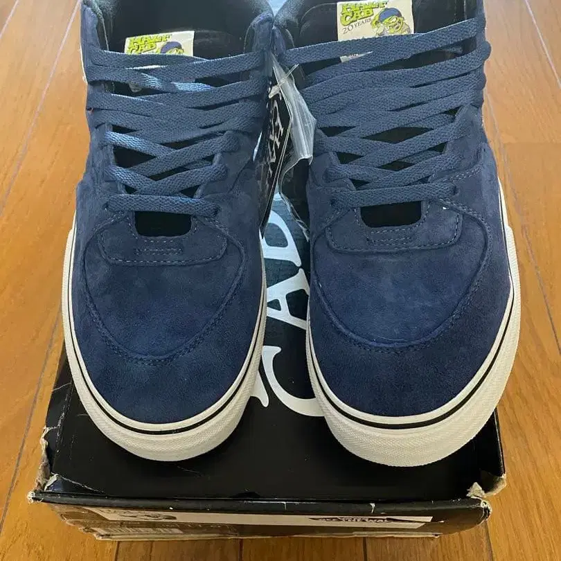 VANS HALF CAB 20주년 기념으로 출시된 HALF CAB PRO입니다. HALF CAB에서 흔히 발생하는 입구의 쿠션 소재 경화가 발생하지 않은 최상품입니다! ( 상자에는 데미지가 있으니 이 점 유의해 주십시오 )