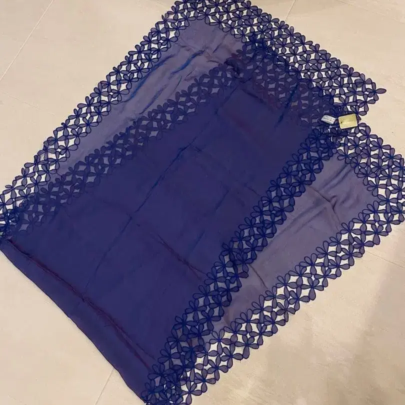 COURO 실크 100% 퍼플 네이비 꽃무늬 자수 스톨