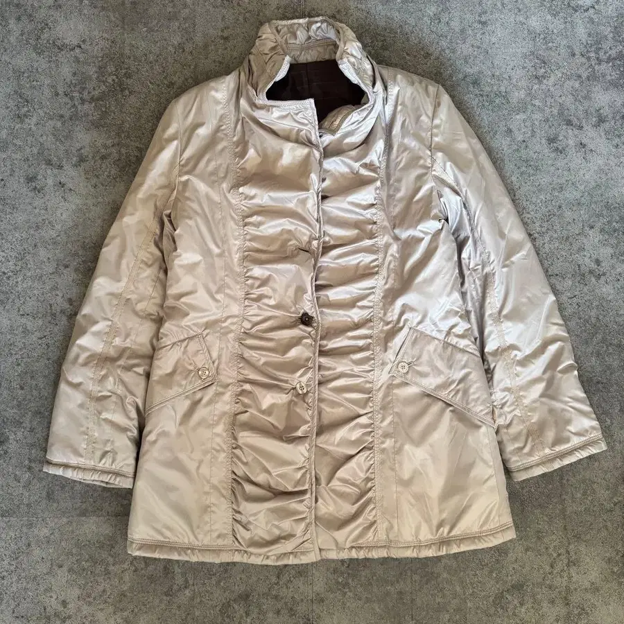 베이지 프릴 충전솜 다운 자켓