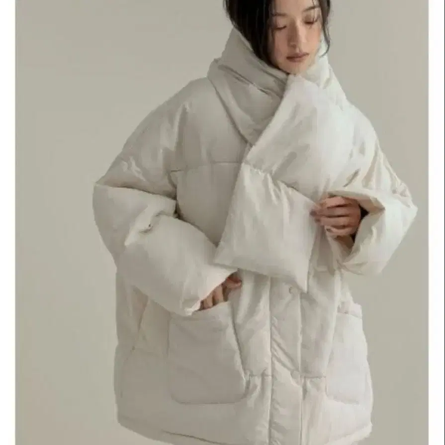 머플러 포함 노카라 충전솜 페이크 다운 자켓