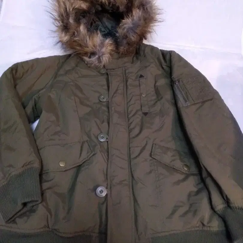 올리브 그린 퍼 후드 밀리터리 여성용 자켓 M 새상품급