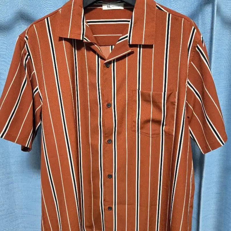 tk. TAKEO KIKUCHI 반팔 셔츠 브라운 스트라이프