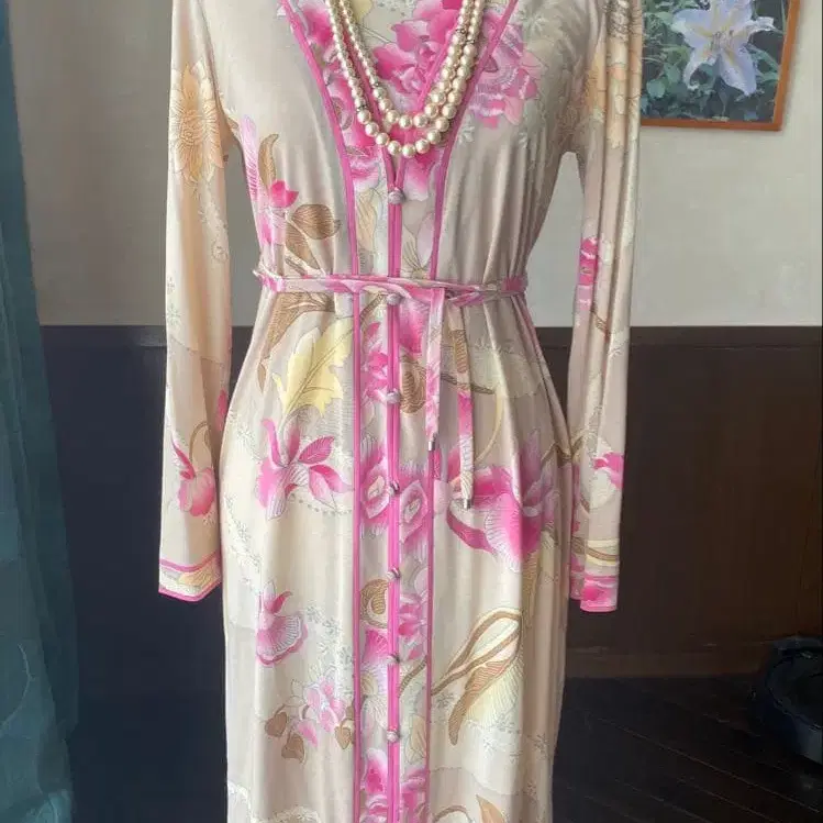 컨디션 최상 LEONARD 레오나르 플로럴 프린트 긴팔 원피스