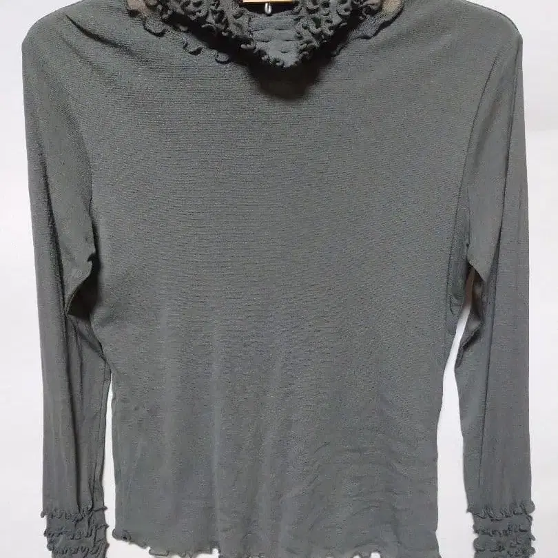 새상품 프릴 달린 하이넥 슈퍼 스트레치 그레이