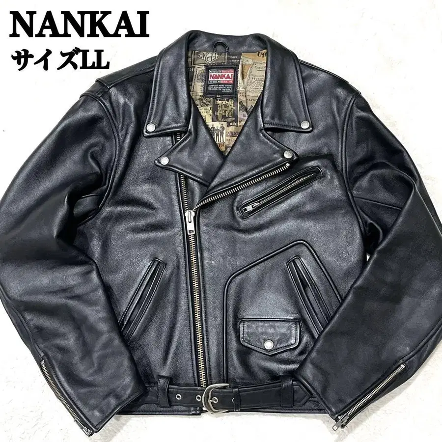 [ 새상품급 XL ] NANKAI 더블 라이더스 안감 올 패턴 블랙 가죽
