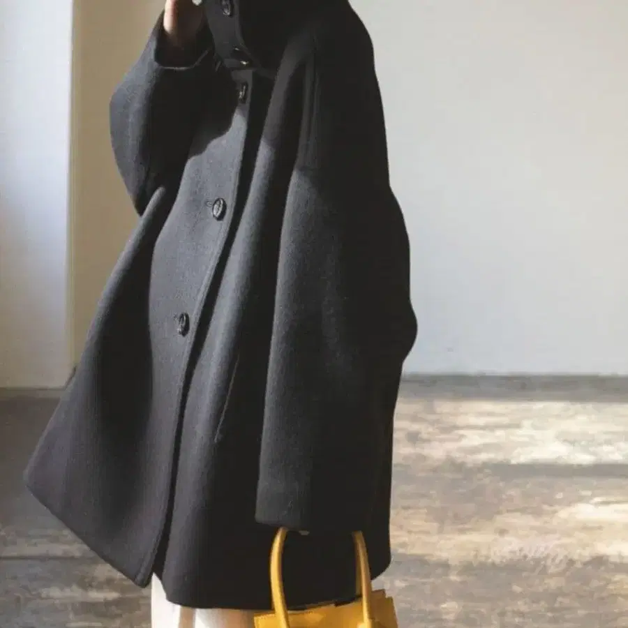 새상품급 Noble 스탠드 카라 오버코트 블랙