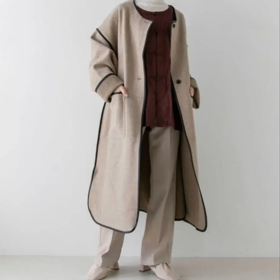 Kastane 새틴 라이너 부착 파이핑 가운 코트