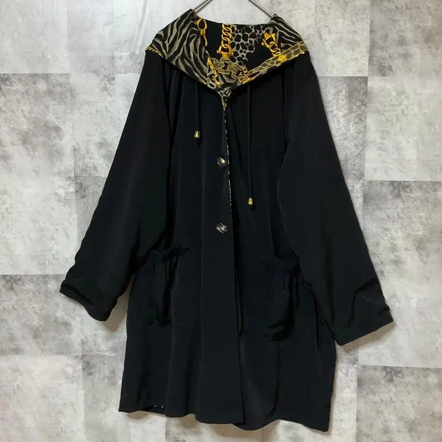약간의 광택이 있는 블랙 원단 & 선명한 올 패턴의 리버서블 코트입니다.