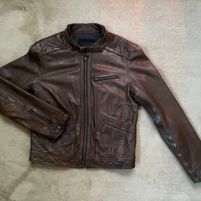 브라운 싱글 라이더 자켓
