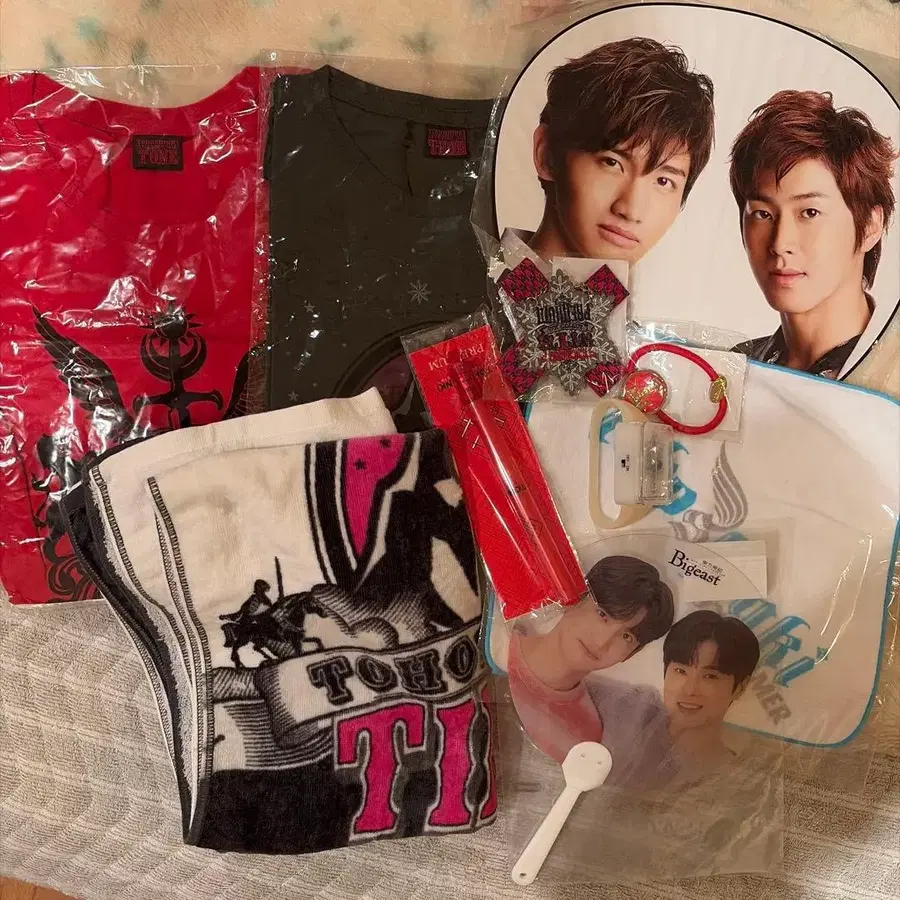 동방신기 굿즈 묶음 판매 T셔츠 부채 응원봉 타월