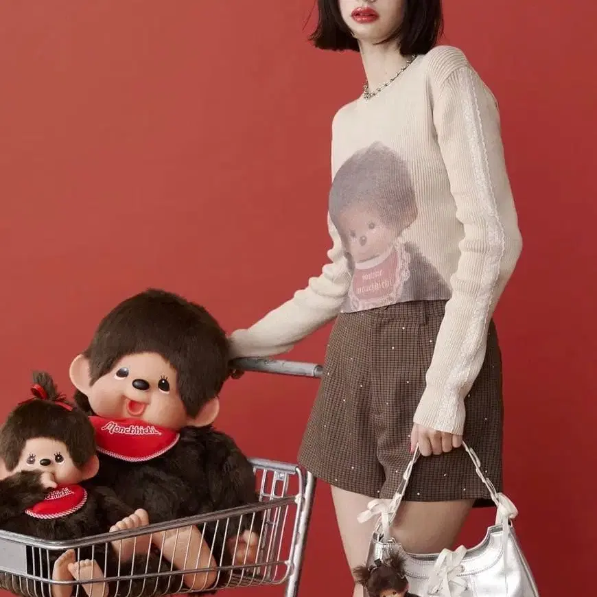 monchhichi x jouetie 포토 프린트 니트 아이보리