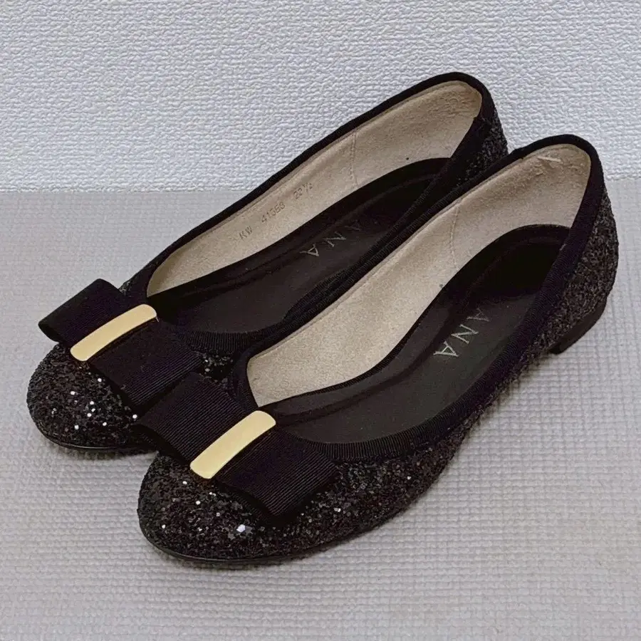 DIANA 리본 그로그랭 플랫슈즈 라메 글리터 22.5 블랙