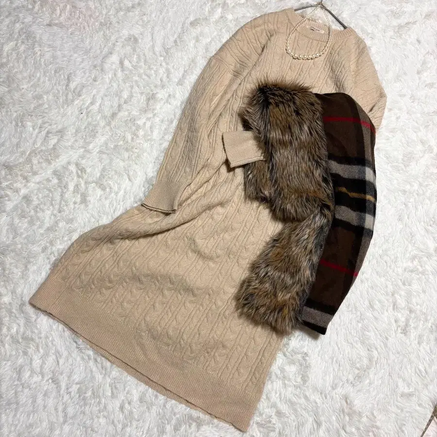 FREAK'S STORE 루즈핏 케이블 짜임 롱 원피스 베이지