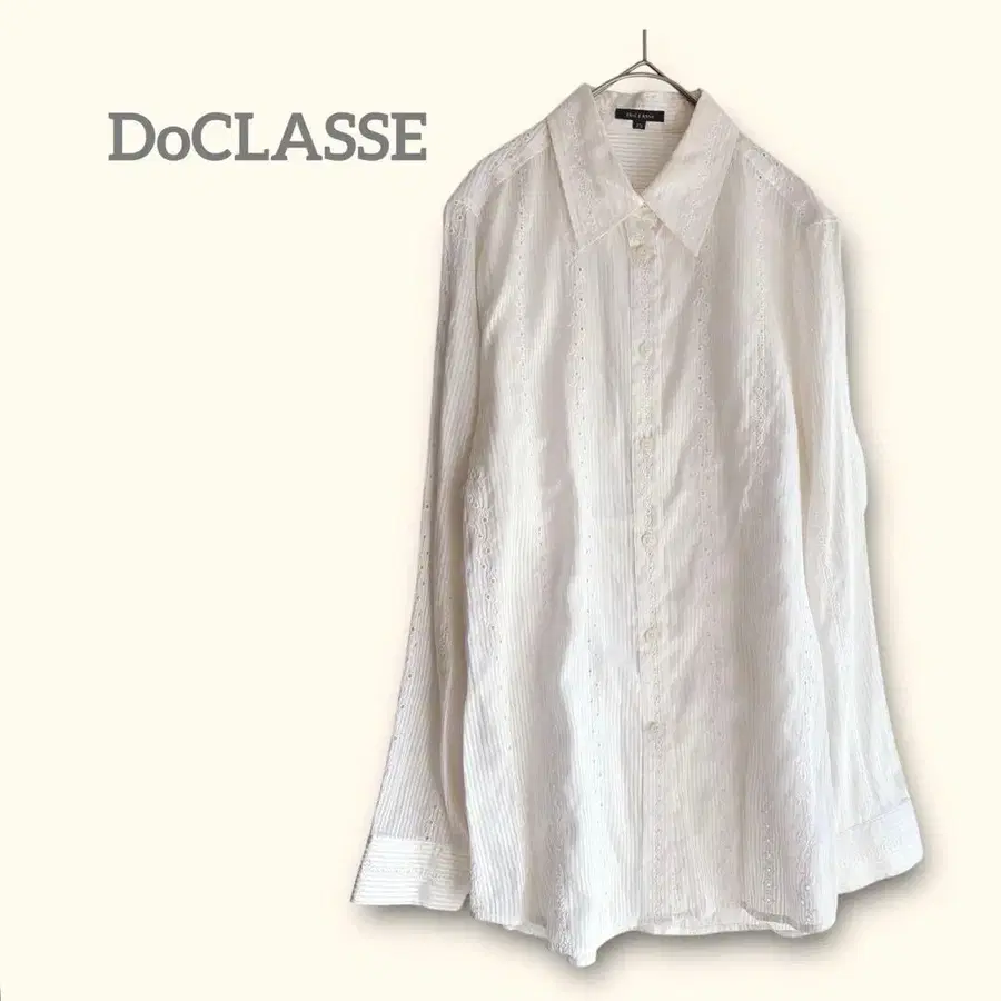 두클라쎄 [13] 긴팔 셔츠 아이렛 레이스 스트라이프 화이트 광택 비침