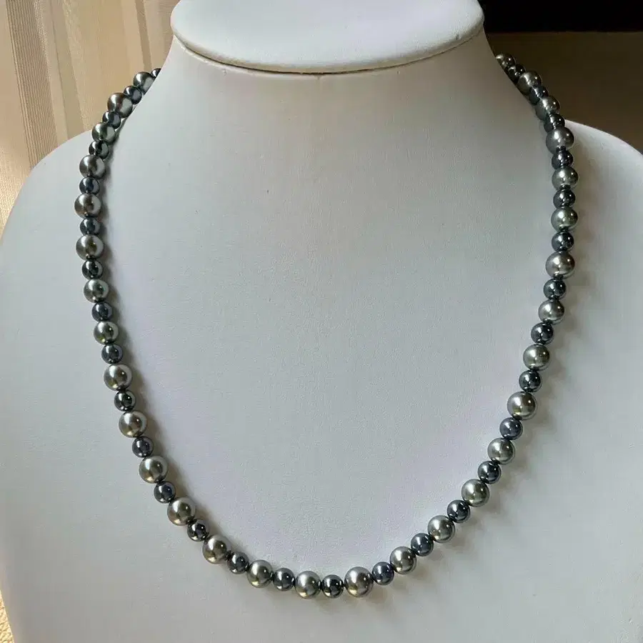 [새상품급] 모조 진주 목걸이 블랙 실버 금장 장식 실버색 1