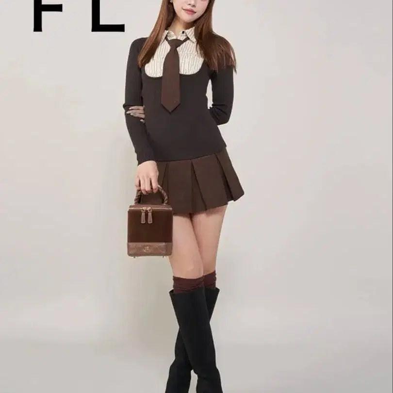 Darich 다리치 셔츠 도킹 니트 미니 원피스 브라운 FL