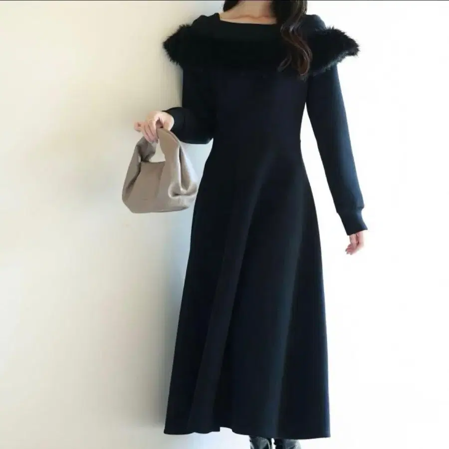 퍼가 달린 케이프풍 롱 플레어 원피스