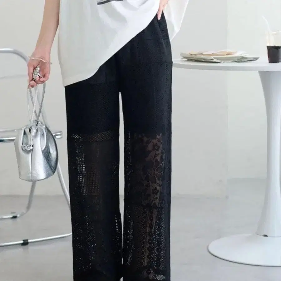 새상품 디스코트 패치워크 레이스 팬츠 블랙