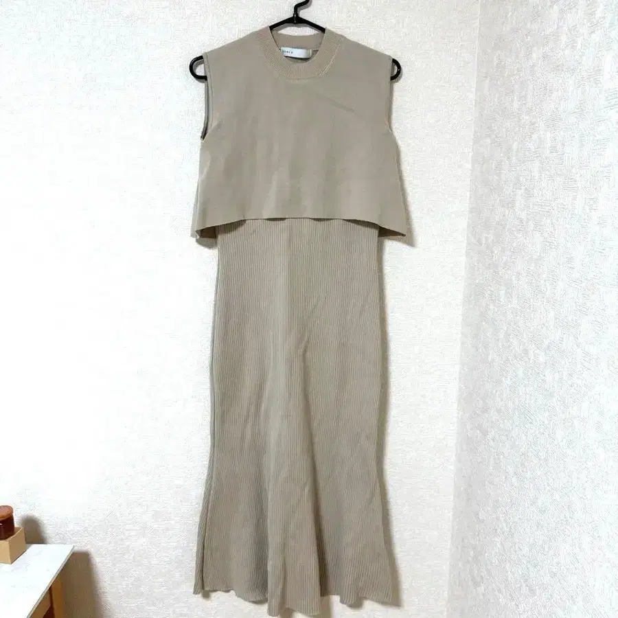 NOBLE 슬리브리스 롱 니트 원피스 베이지