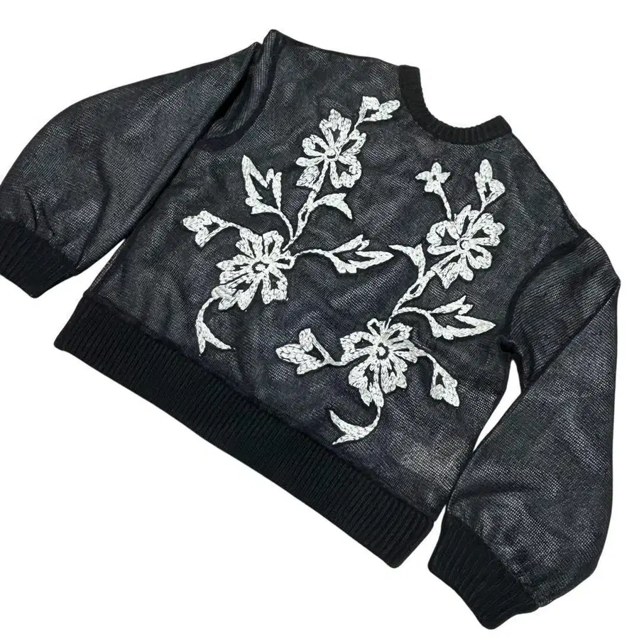 AMERI UND HAND EMBROIDERY MESH TOP 블랙
