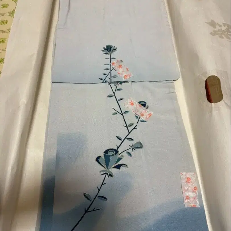 스카이블루 꽃무늬 코몬 기모노 겉옷
