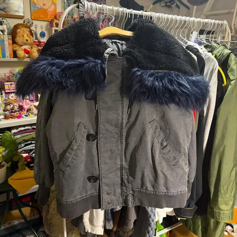 • 네이비 퍼 탈부착 밀리터리 자켓