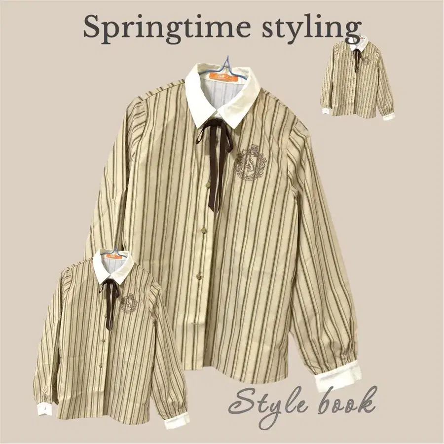 스트라이프 패턴 긴팔 블라우스 ( TURTLEPUT )