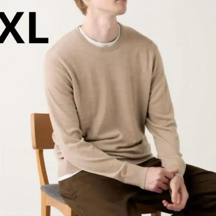 유니클로 남성용 메리노울 크루넥 스웨터(긴팔) XL 베이지